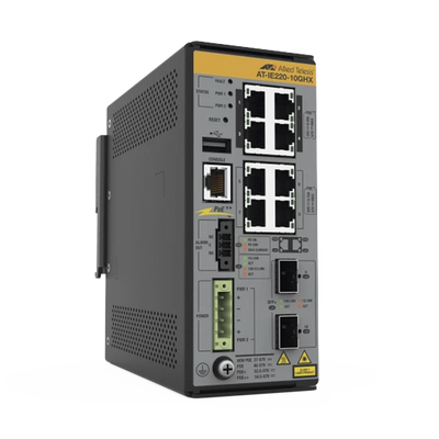Conmutadores reforzados construidos para un rendimiento duradero en entornos hostiles. Power over Ethernet (PoE++) conecta y alimenta dispositivos ambientales, de control de sistemas y otros dispositivos IIoT clave para una solución confiable y de alto rendimiento. La serie IE220 permite la seguridad y el buen funcionamiento de la automatización de edificios, el transporte inteligente y las redes de ciudades inteligentes.