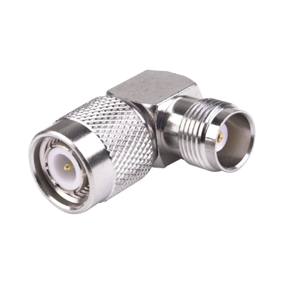 Adaptador de TNC Macho a TNC Hembra en Ángulo Recto, RoHs Compliant, Níquel/ Oro/ Teflón.