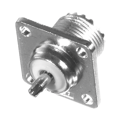 Home Radiocomunicación Todos Chasís Conector UHF Hembra (SO-239) para Chasis 18 mm, Terminal Soldable, Bronce Blanco/ Oro/ Teflón.