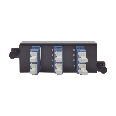 - Las placas adaptadoras LC proporcionan una manera simple de integrar la conectividad LC a LC tradicional dentro del distribuidor FCP3 de ultra alta densidad.